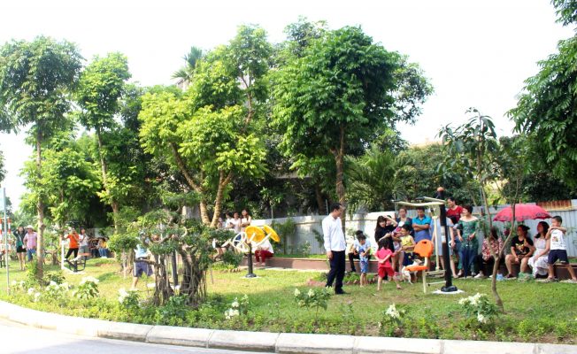 Khu vui chơi trẻ em được lắp đặt bên cạnh Khu thể dục, thể thao với rất nhiều loại máy tập Gym, máy tập thể hình đa năng và nằm ở vị trí trung tâm Khu đô thị, giữa màu xanh bạt ngàn của cỏ cây, hoa lá trong lành, dịu mát.